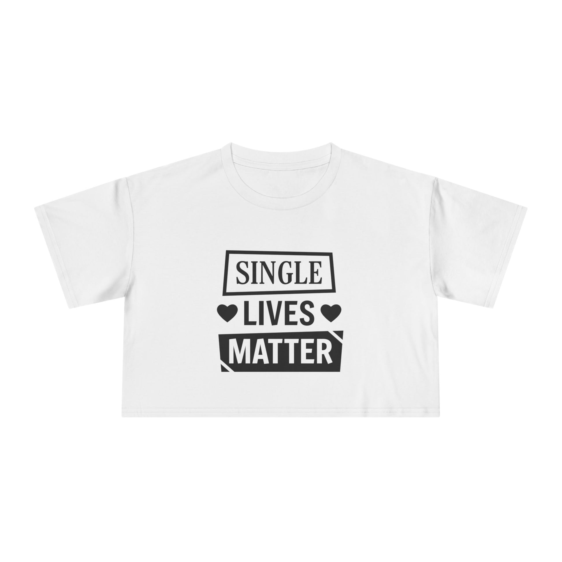 Make a bold statement with our "Single Lives Matter" women's cropped tee.—a fun and empowering way to celebrate independence and self-love. Whether you’re proudly single, between relationships, or just loving your solo journey, this tee lets you express that your life is meaningful just as it is.